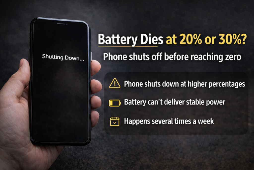If your phone dies at 20% or even 30%, that’s not normal. It’s one of the clearest signs something’s wrong with the battery.