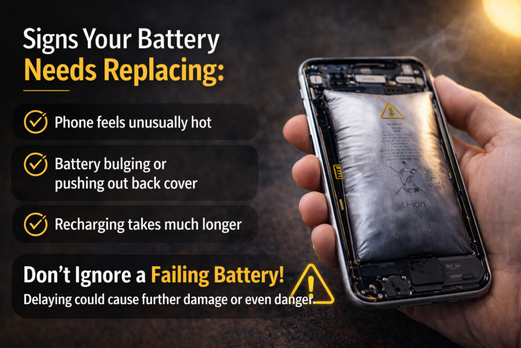 This guide walks you through the exact mobile battery replacement signs, how to confirm what’s actually causing the problem, and when it makes more sense to replace the battery instead of the whole phone.